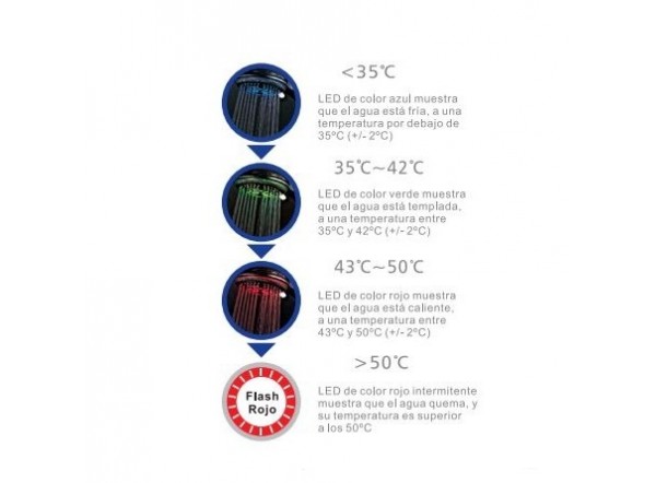 Si el led se muestra rojo intermitente el agua quema y su temperatura es superior a 50º.