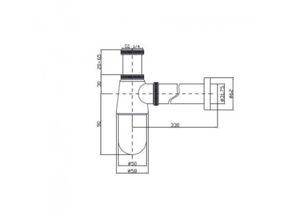 Sifón botella Toc acabado latón cromado, medidas 1"1/4x32mm.