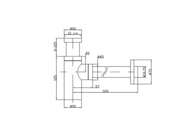 Sifón botella Aretha acabado latón cromado, medidas 1"1/4x32mm.