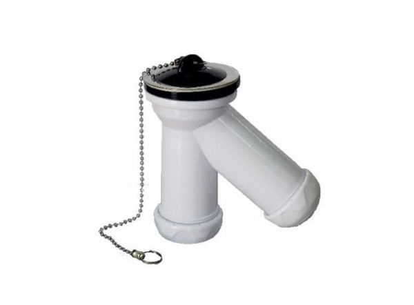 Sifón "Y" con válvula de medida 1"1/2xd40mm. Con rejilla d70mm de acero inoxidable AISI304 y cadena de bolas de laton cromado. Incluye una junta reductora d40 a d32mm.